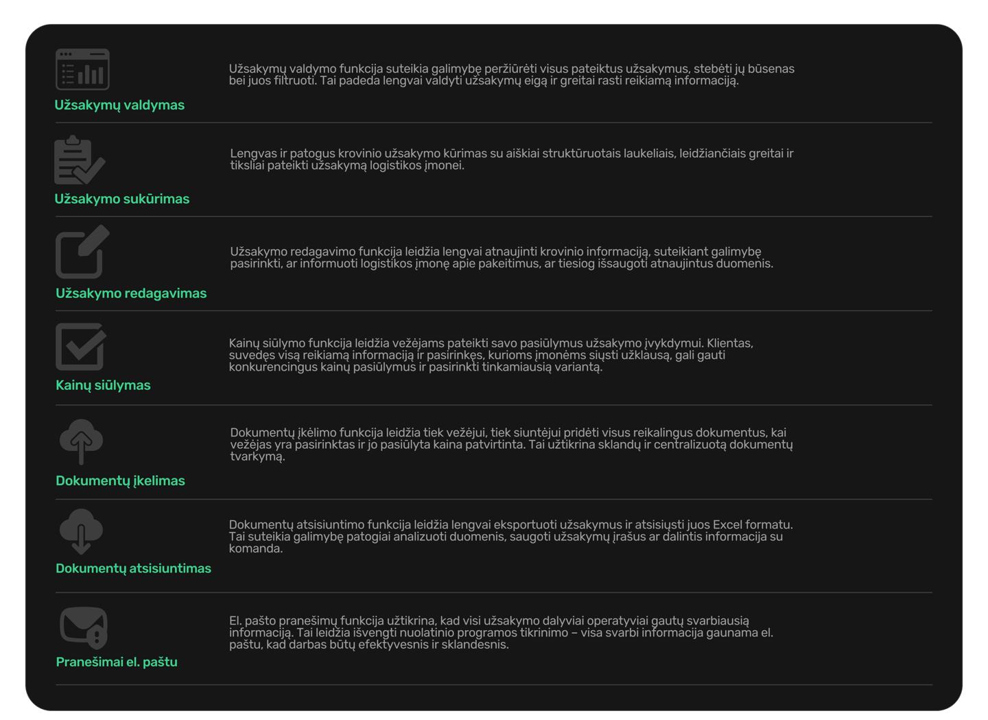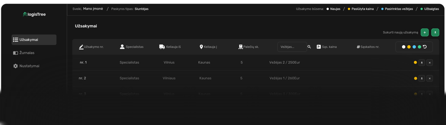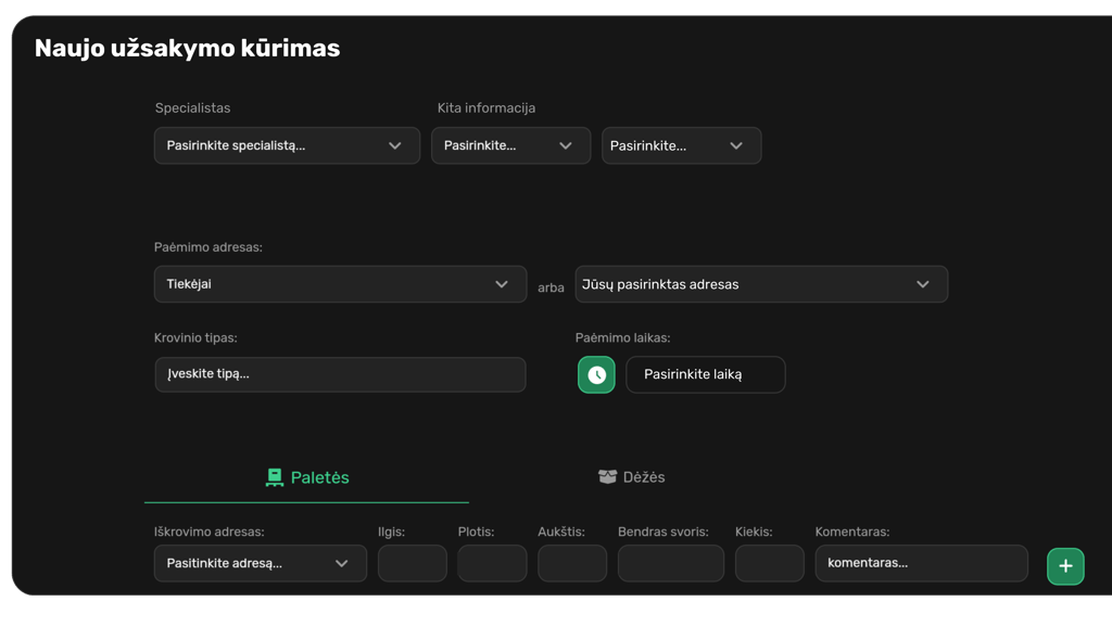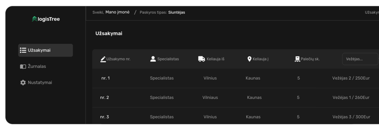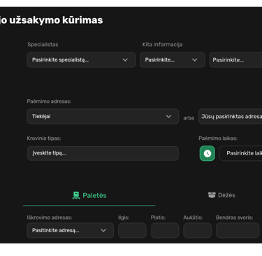 Lengvai ir patogiai pateikite savo užsakymą vežėjams.