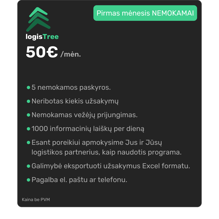 Sistemoje galėsite prijungti visus jau naudojamus Jūsų logistikos verslo partnerius.